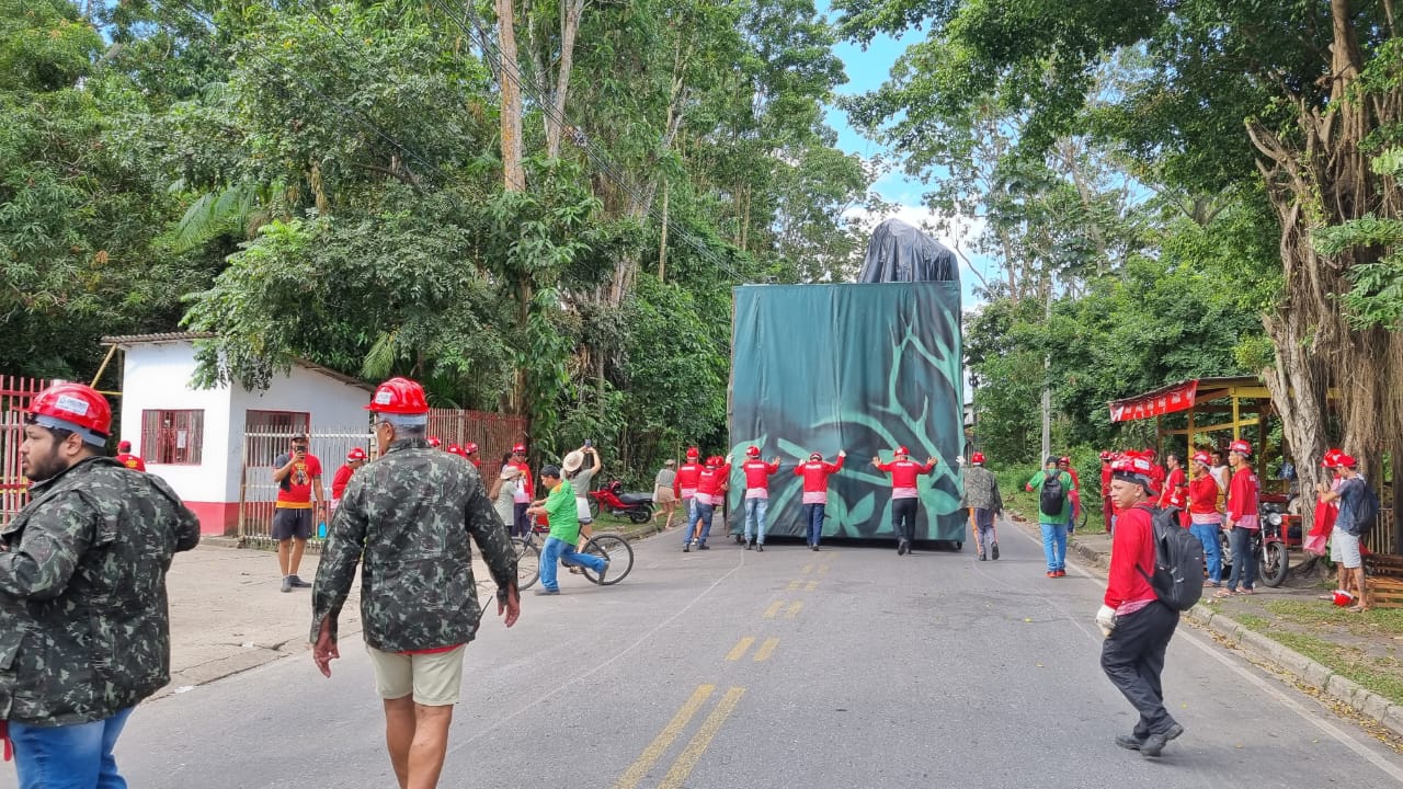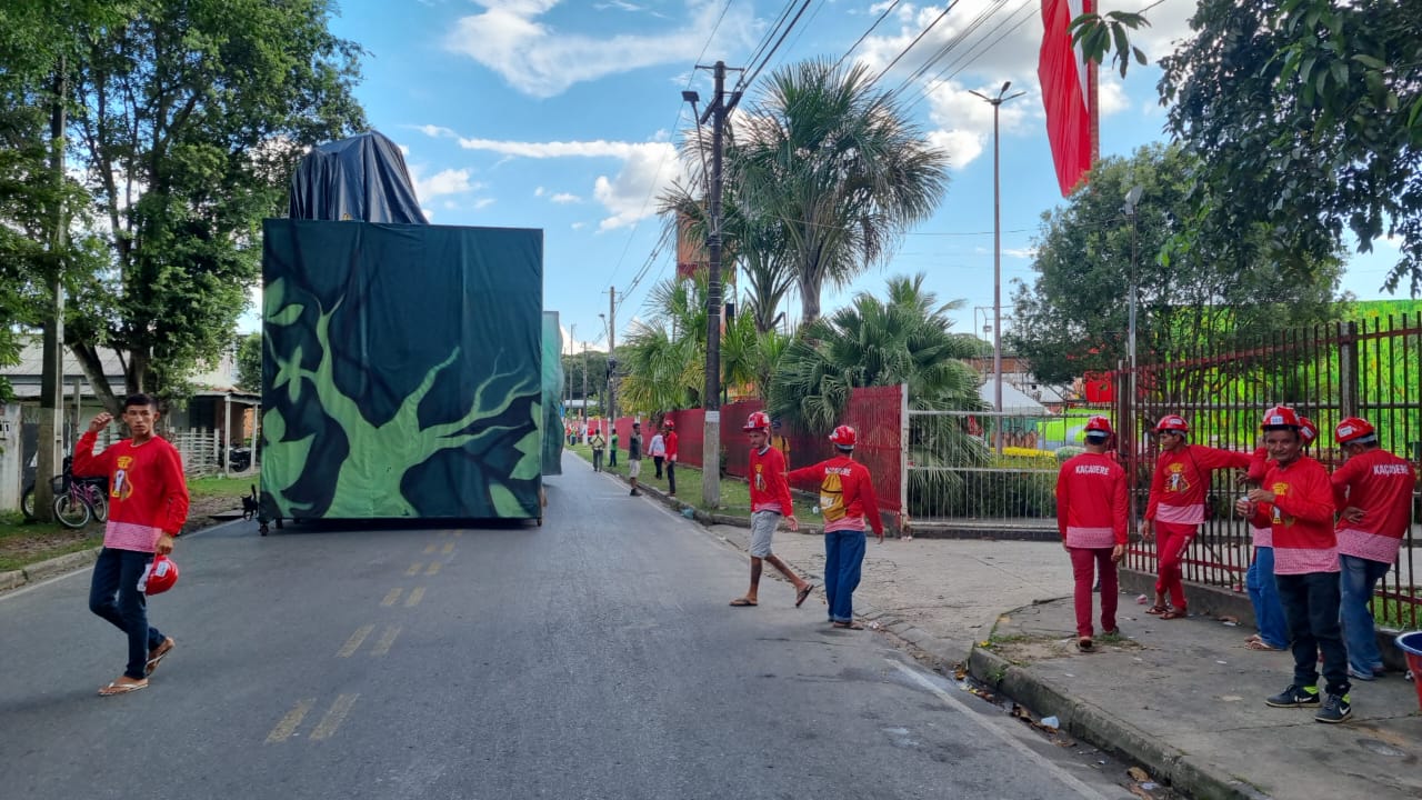 Um clima de euforia e emoção tomou conta de diretores, artistas e pessoal de transporte do Boi Garantido, na tarde deste domingo (25), quando os módulos alegóricos começaram a sair dos galpões em direção ao bumbódromo de Parintins. A comissão provisória, que assumiu o comando do Garantido, acompanhou o início do trabalho dos kaçauerés, os empurradores de alegorias.