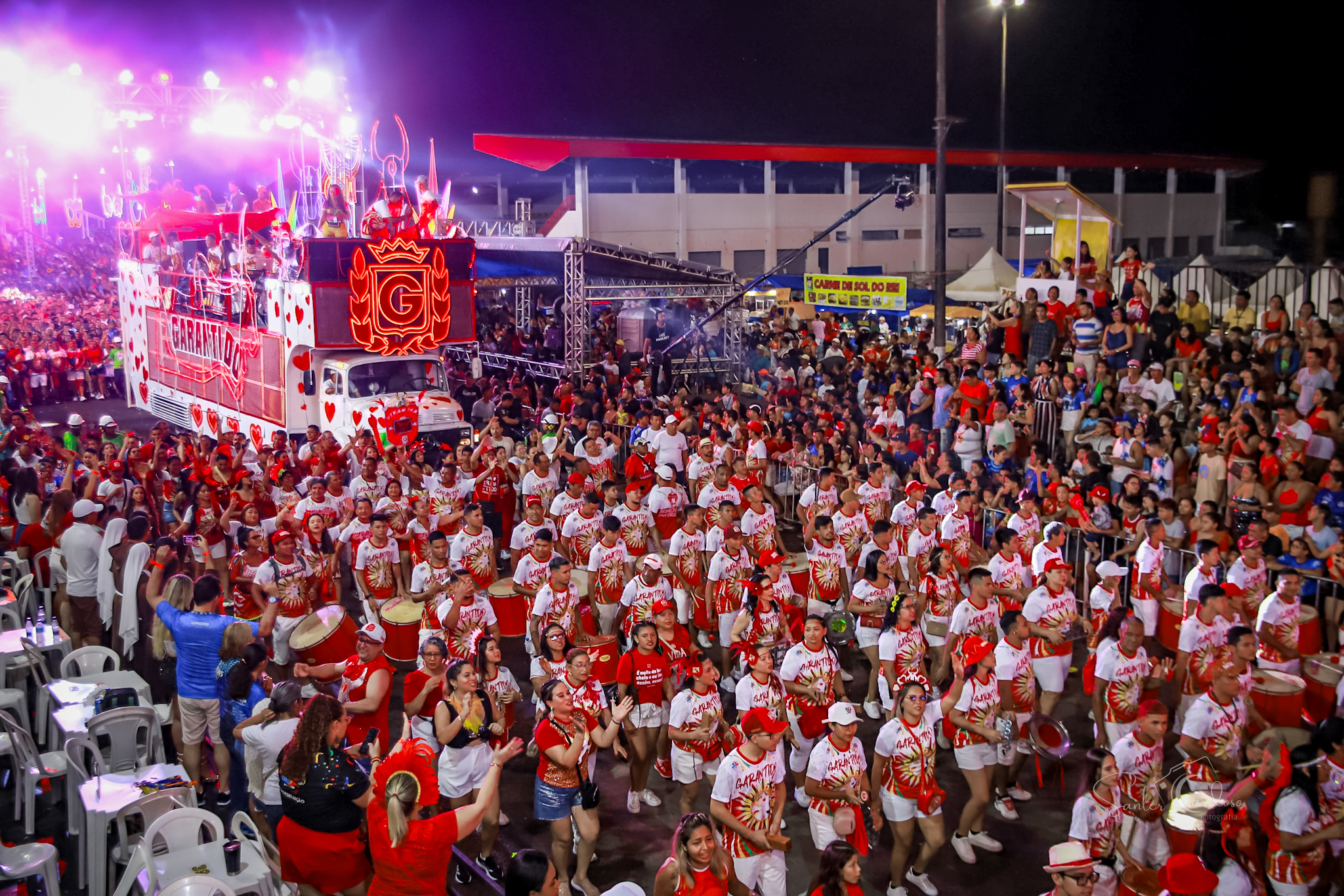 O Boi Garantido participou, na noite dessa terça-feira (13) de carnaval, do Carnaboi 2024, em Parintins. A festa reuniu apresentações em trios-elétricos com o ritmo do boi-bumbá. O Boi Garantido levou um arsenal de peso que empolgou a multidão nas três passagens do trio encarnado.