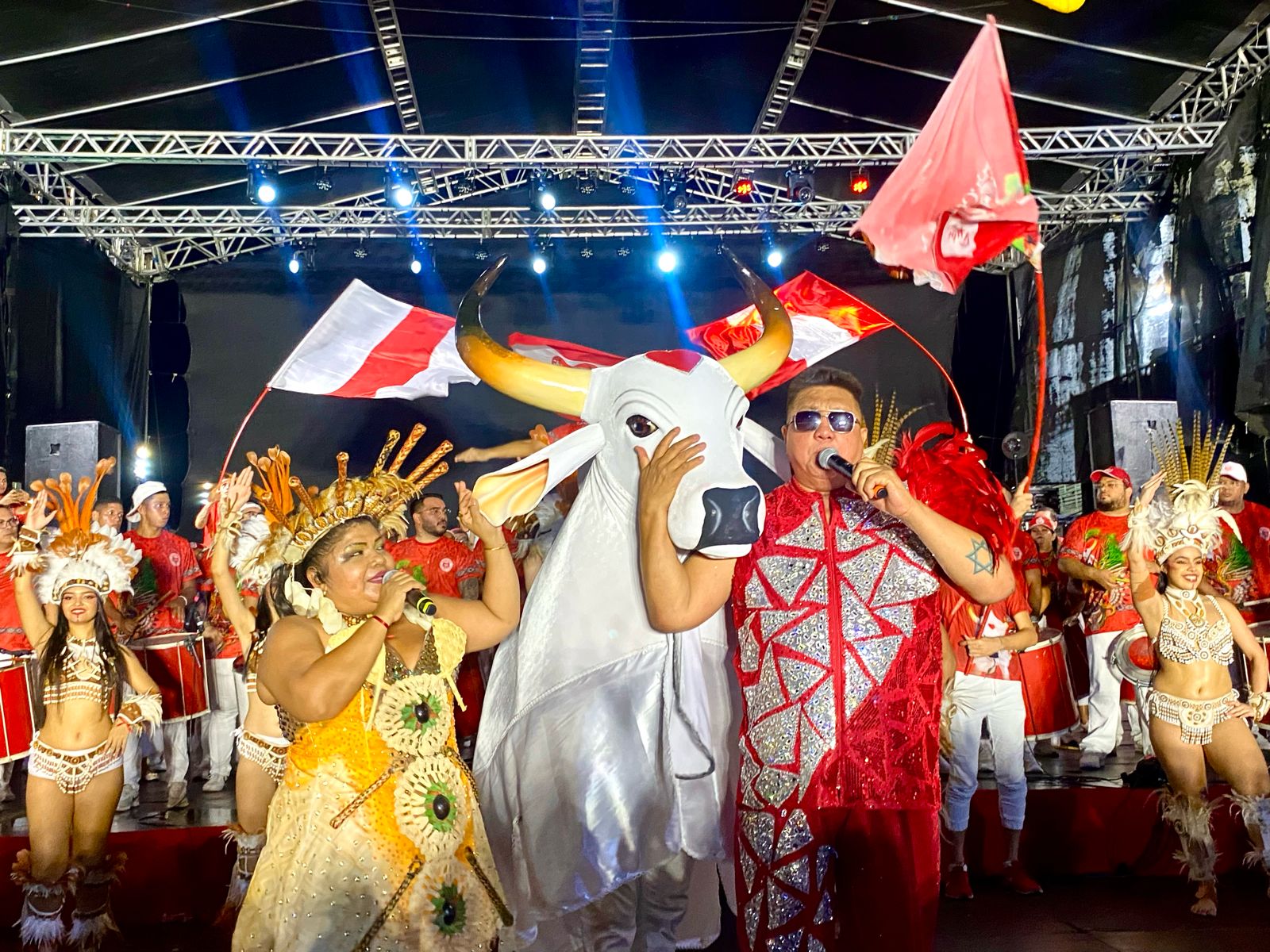 A Rosa Vermelha, em sua voz incomparável, Márcia Siqueira, dividiu o palco com David Assayag e a Batucada, e cantou a toada Revolução das Cunhãs, de 2022, emblemática. Outras toadas fizeram os torcedores viajarem no tempo como Eldorado, e uma sequência de Terceira, Quarta e Quinta Evolução, 1997, 1998, 1999, respectivamente. Ovacionado, o Boi Garantido, com o tripa Batista Silva evoluiu no palco ao som da toada Vendaval de Amor Garantido, de 2023, do álbum Garantido por Toda a Vida. Claro, o boi dividiu o palco com a sinhazinha da fazenda substituta, Noely Reis.