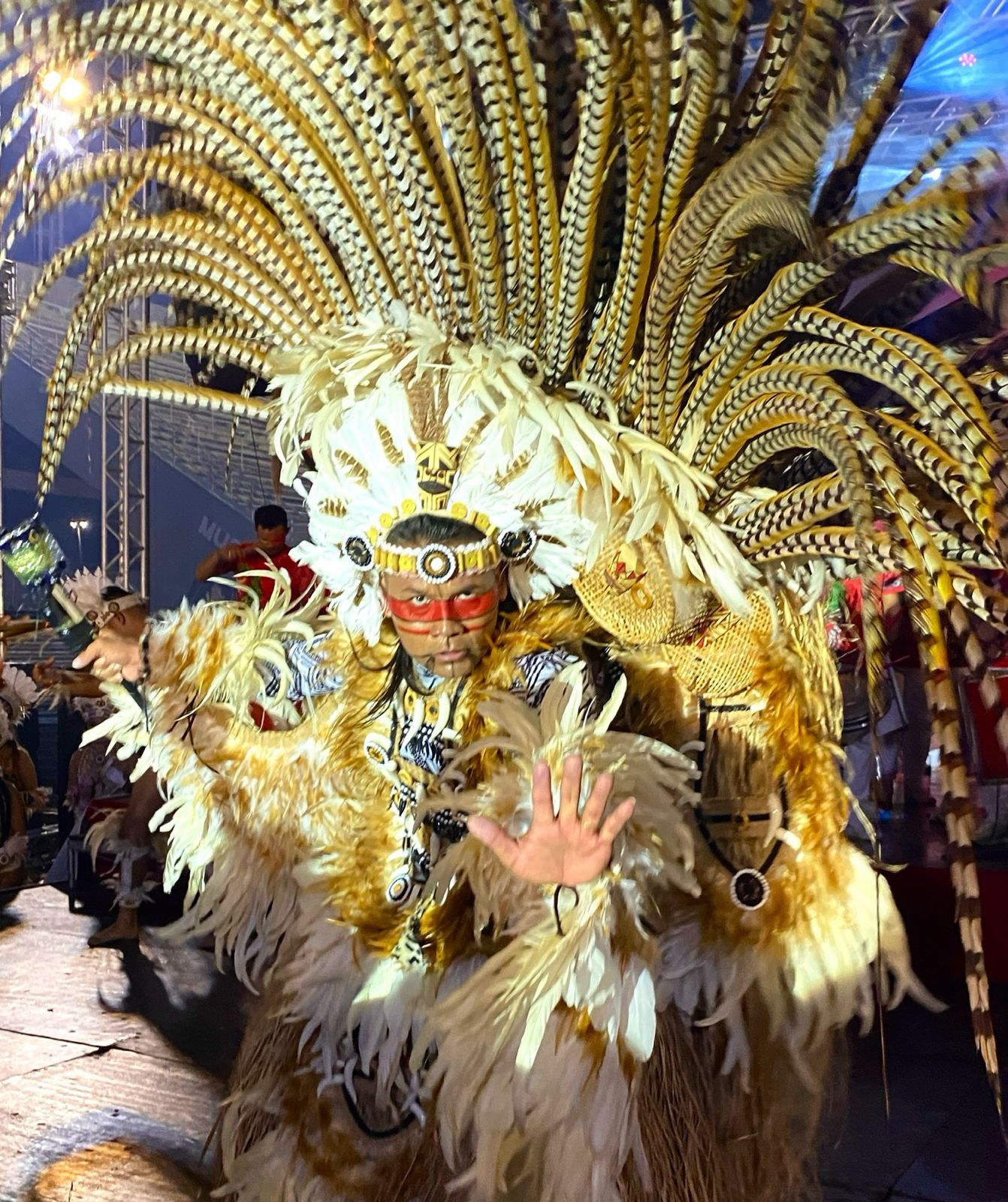 Adriano Paketá, o Pajé oficial do Garantido protagonizou o momento tribal. Chegou em cima de uma miniestrutura alegórica e fez sua performance ao som de “O Baiá”, toada que transformou o sambódromo em um grande cenário místico, em uma representação artística da ancestralidade indígena da inspiração do boi-bumbá.