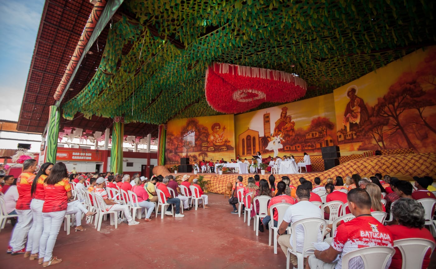A celebração religiosa é um dos ritos tradicionais do bumbá que marca o início dos trabalhos no galpão para a temporada bovina, onde os artistas recebem as bênçãos de Deus e Nossa Senhora do Carmo, padroeira de Parintins.