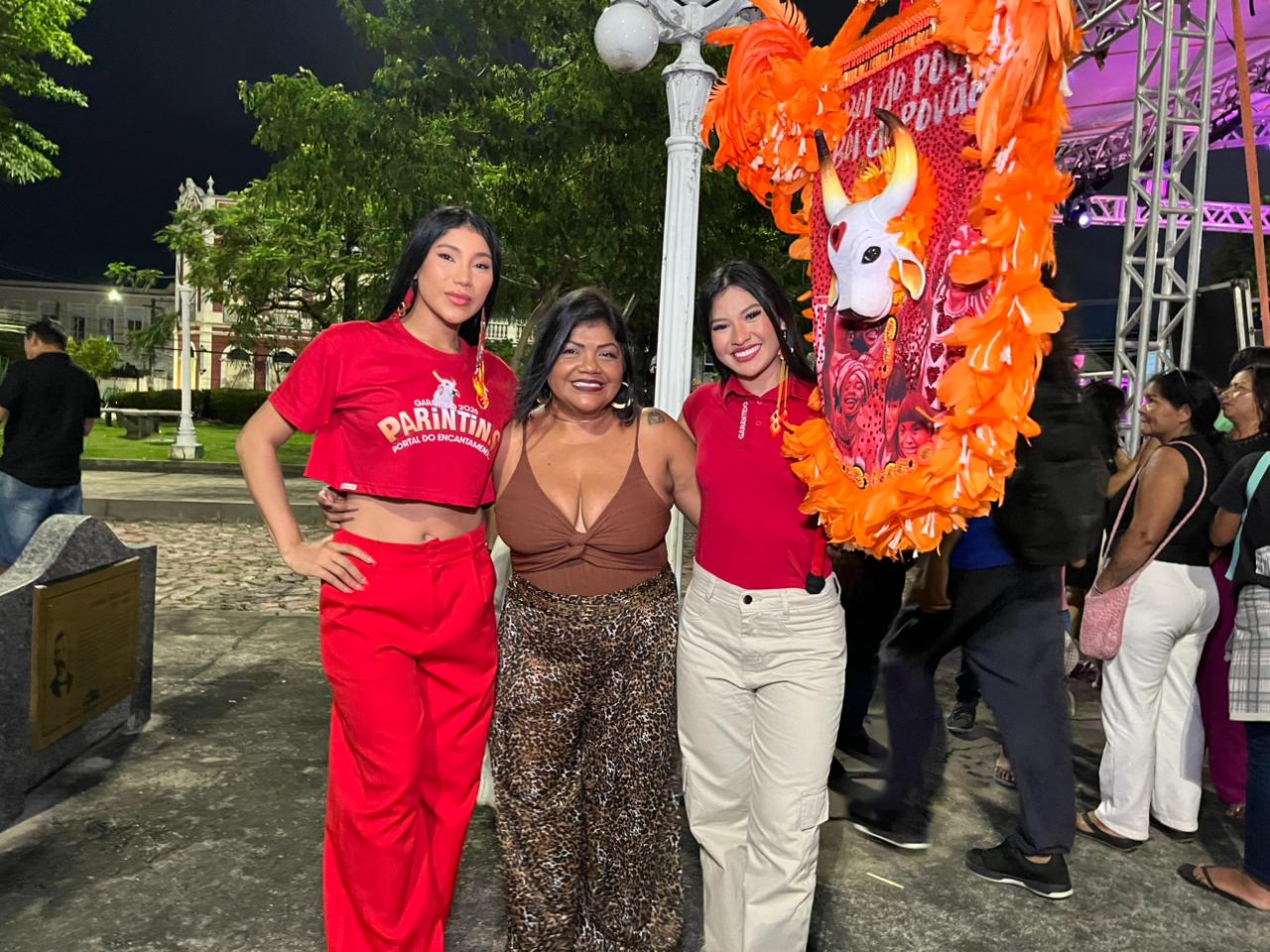 Jeveny Mendonça, Lívia Christina e Márcia Siqueira representaram o bumbá