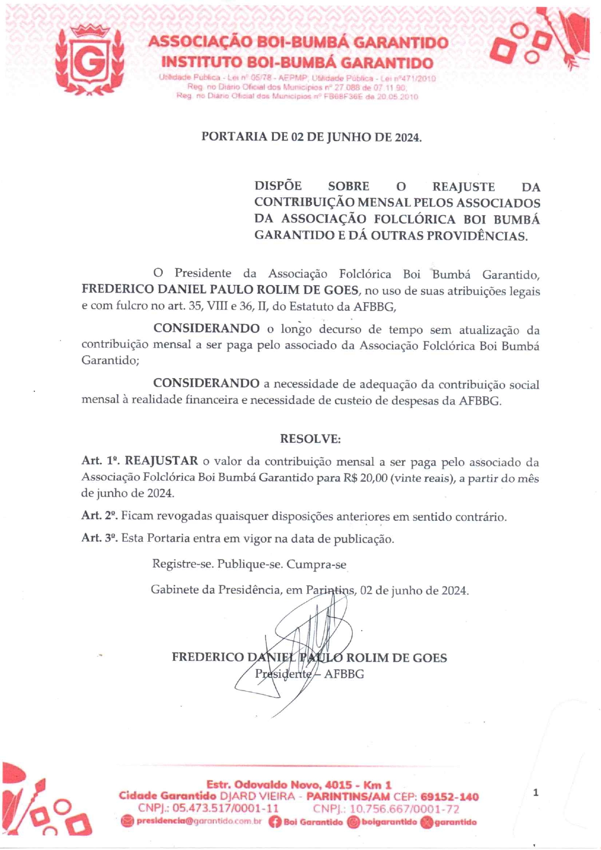 PORTARIA 02 - GABINETE DA PRESIDÊNCIA